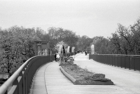 Looking along the new bicycle and pedestrian path over the old railway bridge.